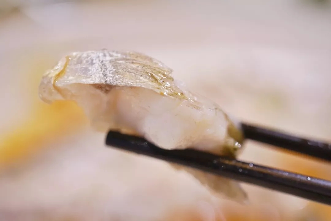 最好吃是靠近尾和鳍处的银色部分,肉鲜味里带着明亮的脂油香气。